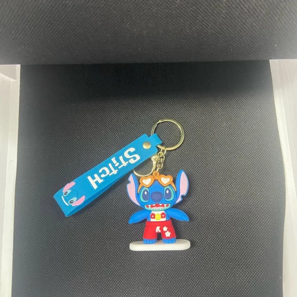 Adorable Stitch keychain featuring vibrant blue and red colors. Perfect for kids who love fun and playful accessories.