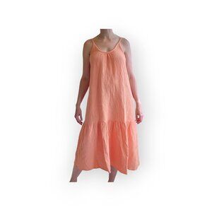 Stitchdrop Apricot 100% Cotton Sleeveless Maxi Tie-Back Dress Large