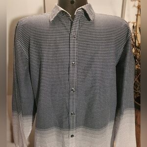 Stockhomme blue and white square checkered pattern full button front mens shirt, slim fit designed NWOT