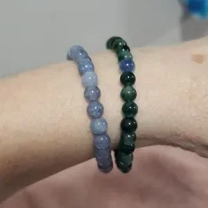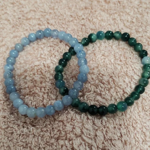 jade and I believe aquamarine stones. I have doubles so am parting with these 2.