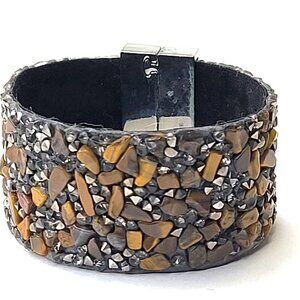 Stone Chips Grey Black Crystals Rhinestones Sparkle Velvet Cuff Bracelet