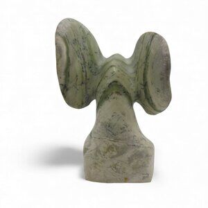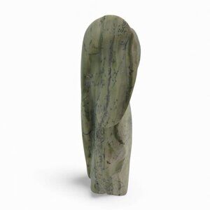 A sculptural masterpiece that captures the essence of African artistic tradition, meticulously hand-carved from a single piece of green-hued stone with intricate natural variations.