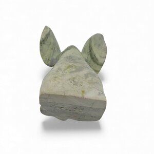Stone Elephant Carved Green Butter Jade Stone from South Africa Signed 5.5"