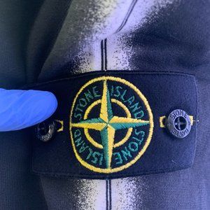In terms of branding, it features an embroidered logo on the right thigh, a removable Stone Island logo on the left thigh, and printed logos on the back pocket and side.