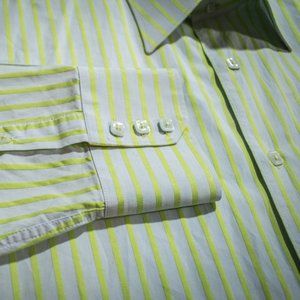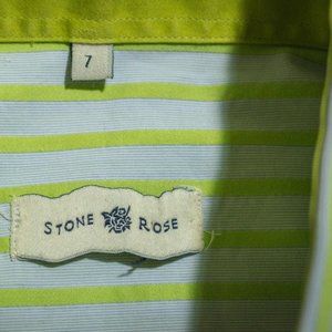 Stone Rose Lime Green White Casual Button-Up Shirt