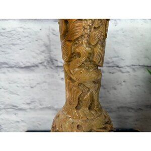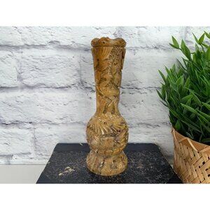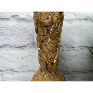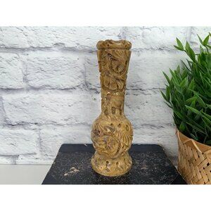 Stone Vase with Engraved Animals Lion Antelope Elephant Vintage