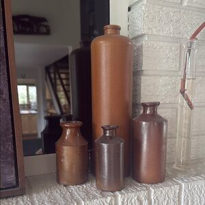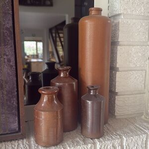 Stoneware Ink Antique English Stoneware Pinch Bottles Bud Vase Shelf Decor