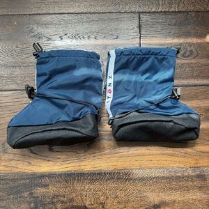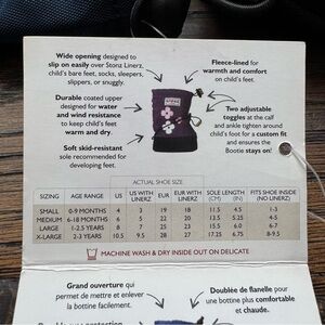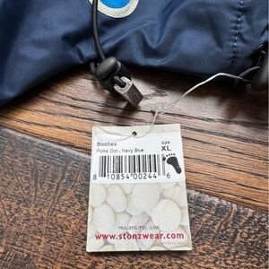 Stonz baby booties in blue and black. Fleece-lined for warmth. Adjustable for a snug fit.