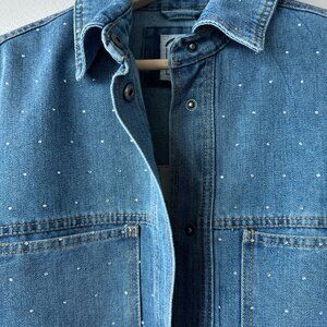 Stoosh Vintage Denim Studded Rhinestone Shacket NWT! Western jean jacket large