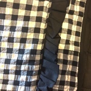 Stoosh (sold by Simons) black and white gingham reversible quilted blazer jacket new with tags. Tie cords ribbons, quilted pattern, ruffled patch pockets, reversible with black and white gingham on a side and black on the other side (the black side doesn’t have pockets). Very feminine, cute and trendy. Composition : shell 50% cotton, 48% polyester, 2% spandex, lining 100% cotton, filling 100% polyester. Colour is accurate in the stock photos, mine are taken in artificial light. Marked size L Large. All measurements are approximate and taken with the garment laying flat: Pit to pit 20.5’’ Total length 21.5’’. This item comes from a smoke free, pets friendly home. Recycled bags/box used when possible. Please, let me know if you'd like any additional info. Thanks for watching!