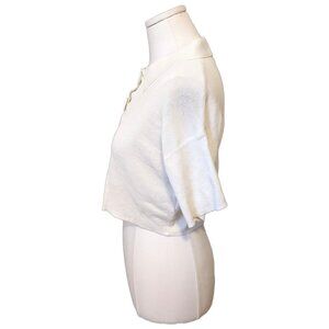 Storets Womens White Knit Polo Crop Top Statement Buttons Summer Scandi Sz S