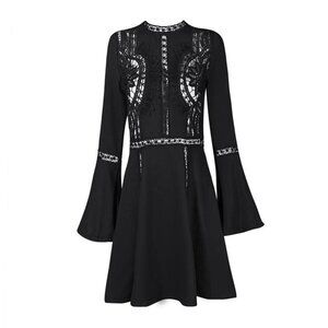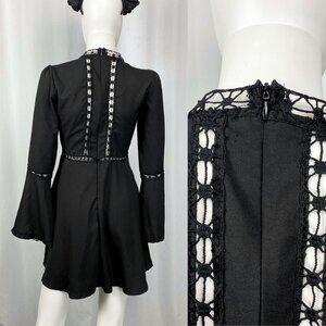 Storets gothic witchy bell sleeve peek-a-boo lace mini swing dress small