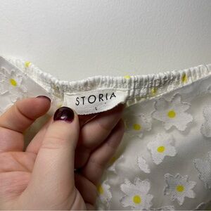 Storia Women's white sheer puff sleeve all over daisy baby doll mini dress in L