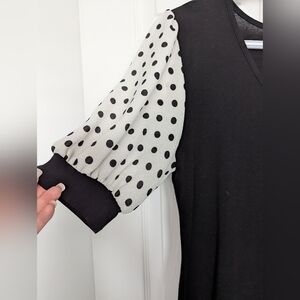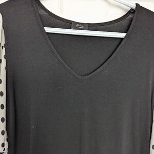 🎈Storm Women's (Size Medium) Black V-Neck Top With Polka Dot Puff Sleeves