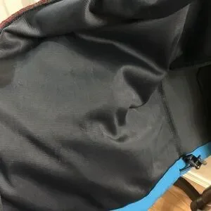 Three exterior zip pockets, one interior zip pocket, and hook and loop cuffs.