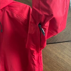 Stay stylish and comfortable with this vibrant red hooded rain coat. Perfect for any weather, this jacket combines functionality with a sleek design.