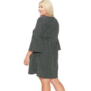Story Tellers, Plus Size Midi Dress With 3/4 Bell Sleeves, 1X, Black & White