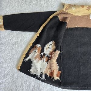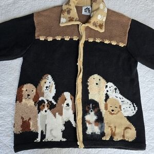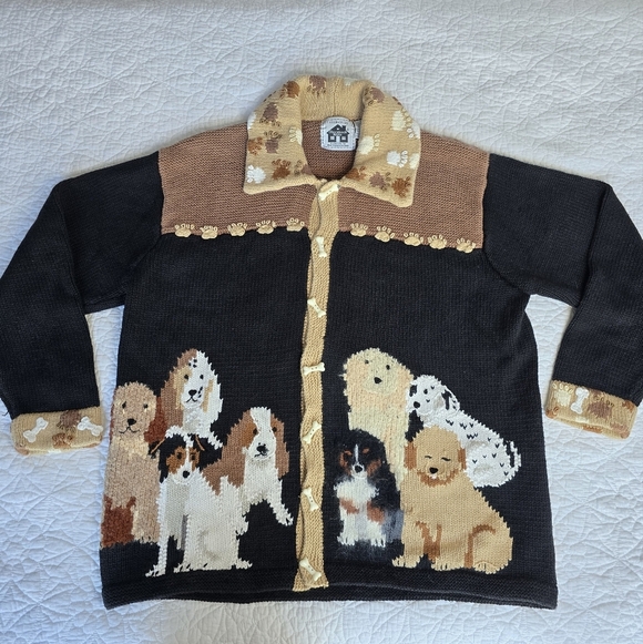 Storybook Knits Dog Motif Heavyweight Knit Cardigan Sweater Bone Buttons 1X