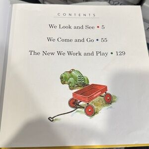 Charming storybook featuring Dick and Jane with friends. Condition is great for what it’s being used for, reading. Bright yellow cover with colorful illustrations. But there is wear on the corner bindings and a few marks inside the book here and there. No major stains, drawings or the like.