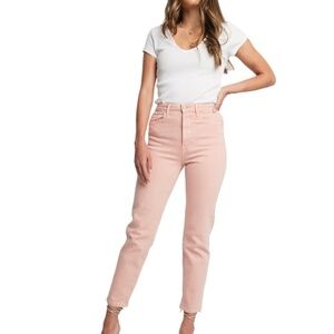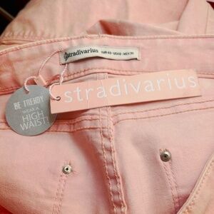 Stradivarius Jeans 5 Pocket Factory Faded Slim Skinny Salmon Pink High Waist
