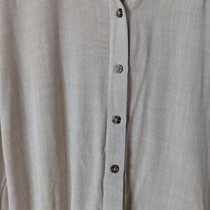 Linen-like oatmeal/beige coloured blouse with roll up sleeves and tortoise shell buttons by Stradivarius, Size L