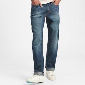 Straight Leg Button Fly Dark Denim Jeans by Zara Jns