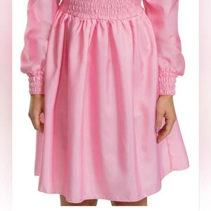 AUTHENTIC ELEVEN STRANGER THINGS COSTUME - Outfit features pink polyester dress features a white collar, weaved center bodice and full skirt