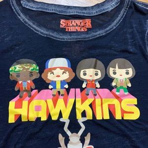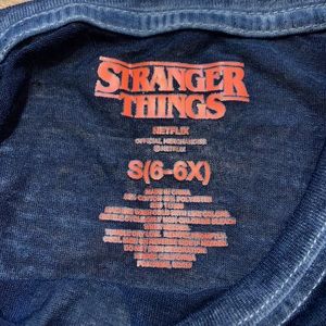 Love this dark blue Stranger Things Netflix lightweight t-shirt. Material is rather see through. Kids size s (6-6x). Great gently used condition.