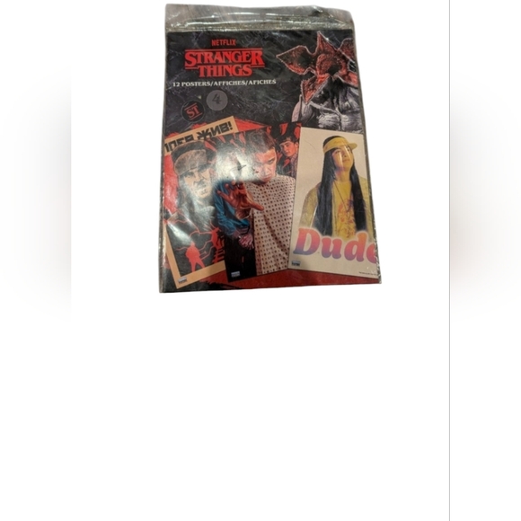 Set of 12 Stranger Things posters featuring iconic characters and scenes. Perfect for fans and collectors.