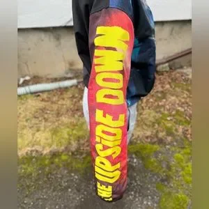 Stranger Things jacket by Netflix. Size S, brand new without tags, never been worn. Multicoloured- black, red, blue and yellow. Polyester material. Small zipper at collar, stretchy cinch cord at the bottom to tighten/loosen.