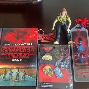 Book, keychain, Eleven figurine, book mark, pin set, pin All brand new!