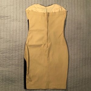 Strapless bodycon mini dress with zipper in back and flattering design in front.