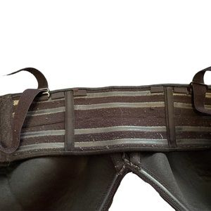 Measures 18.5 inches across at its biggest and just over 17 inches at its smallest. Measured at the bottom of the band.