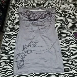 Elegant strapless dress featuring intricate embellishments and a stylish design. stretchy M/L