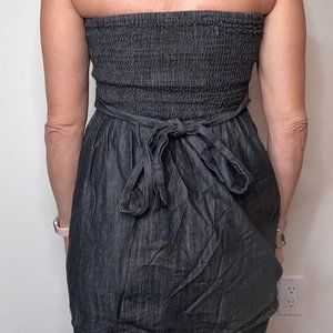 Strapless Jean Dress, charcoal, with pockets, elastic back