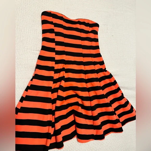 Stylish strapless mini, flares at the bottom for very flattering look! Size medium