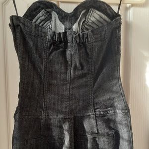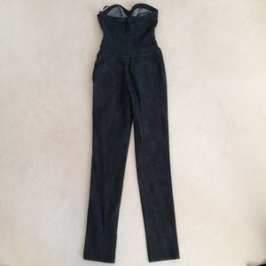 Strapless Sweetheart Neckline Denim Jumpsuit