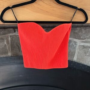 Strapless Sweetheart Neckline Ribbed Knit Crop Top