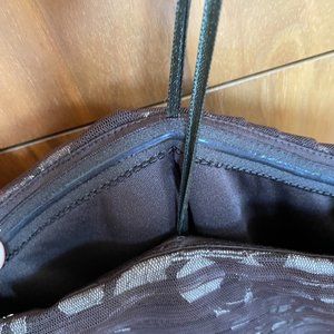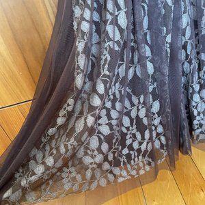 It is brown tulle overlaid over a brown and beige floral pattern. Brown ribbon at waist (can be removed). It moves beautifully when it is on.