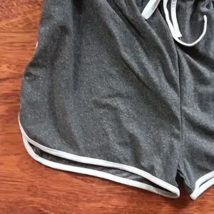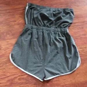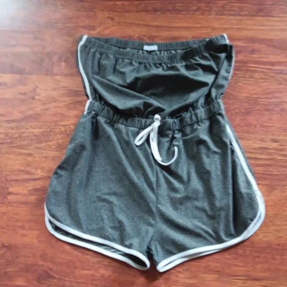 dark Grey heathered athletisure strapless shorts romper with drawstring waist