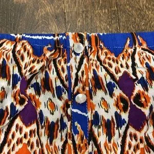 Set of 2 strapless tube tops with button details. Bought from Jean Machine shop years ago and barely wore! Elastic top keeps the shirts up and elastic at the waist cinches for a flattering fit. Really cute patterns for summer. See close up pics for button details and patterns. Perfect condition!