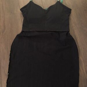 Feels and looks brand new. Flattering empire waistline. Tropical rainforest palm print above the empire waist, black below the waist. Built in bra style with removable pads. Strappy, open back. Great for beach day to night, or a cruise! Falls above the knee on me (5'8"). FYI, it fits longer on me than it does on the fabletics model (they probably hemmed it for that shot).