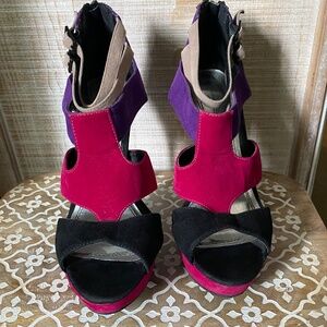 Strappy Faux Suede Heels in Purple, Taupe, Fushcia and Black, Size 8
