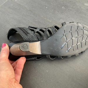 Zipper on the inside and elastics that make this sandal extremely comfortable