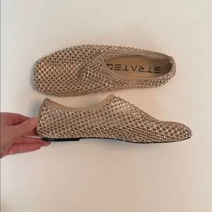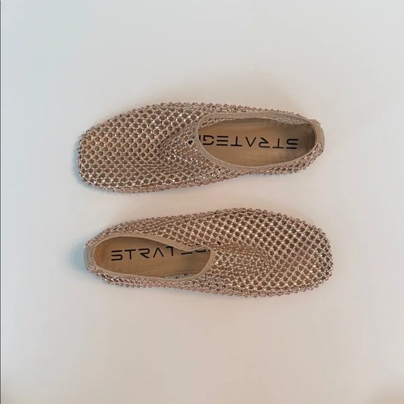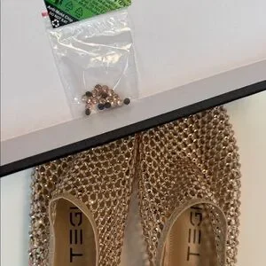 Elevate your style with the hottest shoes of the summer. Like jewelry for your feet, these shoes are perfect for any occasion. Experience comfort and elegance with every step. Size 40 and fits true to size and the mesh has some elasticity for added comfort. Comes with original box and extra crystals.