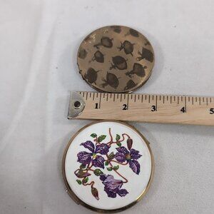 These 2 compacts are in poor vintage condition. The paint has worn off of the 1950s dancer compact, and the other floral compact has a broken mirror. Sold at a steep discount! Please see pictures!