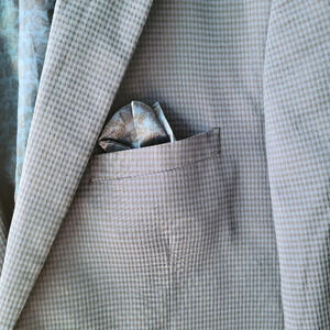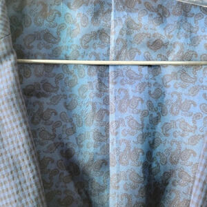 Strauss Blue Jacket Checkered Blazer Jacket Buttons Handkerchief 42S