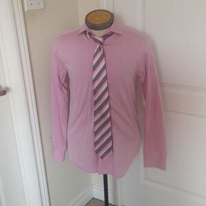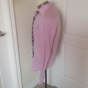 Strauss Men Button Down Shirt & Tie Combo Tie 100% Silk 14.5 Pink