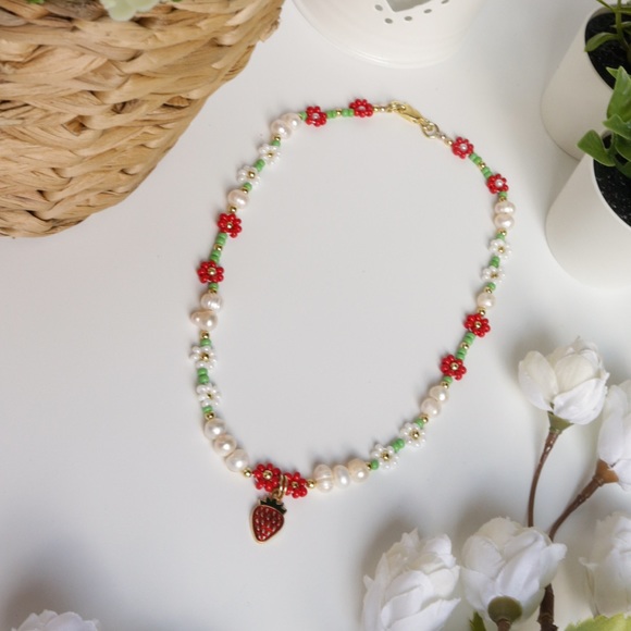 Strawberry Beaded Necklace