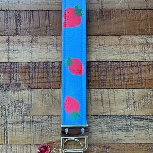 Vibrant keychain with a playful strawberry design. Adds a fun touch to your accessories.